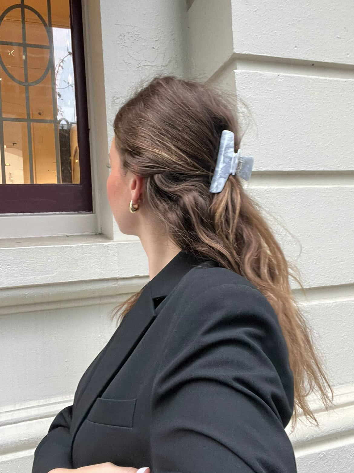 Buttermilk claw clips, combs, barrettes and hair forks are thoughtfully crafted from plant-based cellulose acetate.
