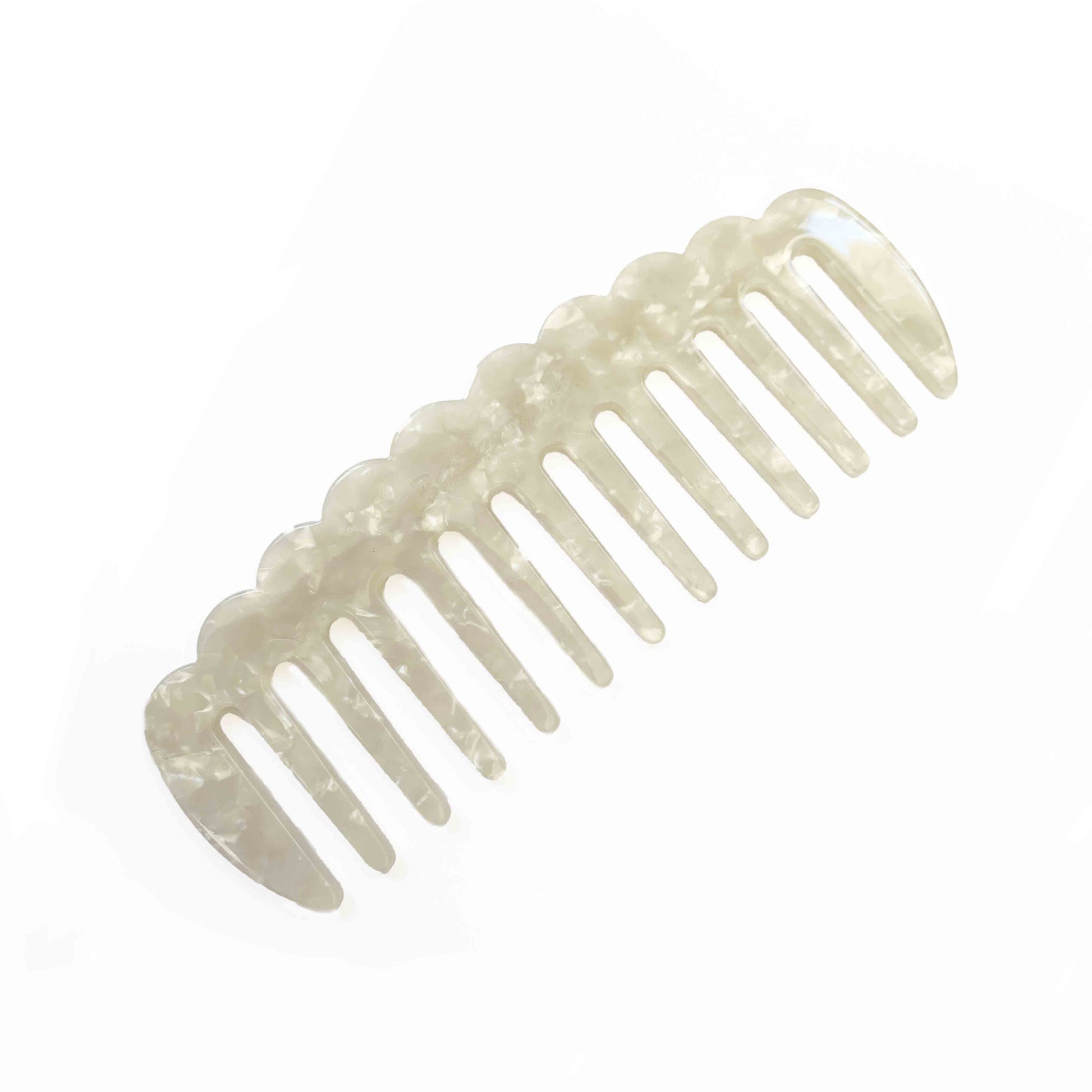 Buttermilk claw clips, combs, barrettes and hair forks are thoughtfully crafted from plant-based cellulose acetate.